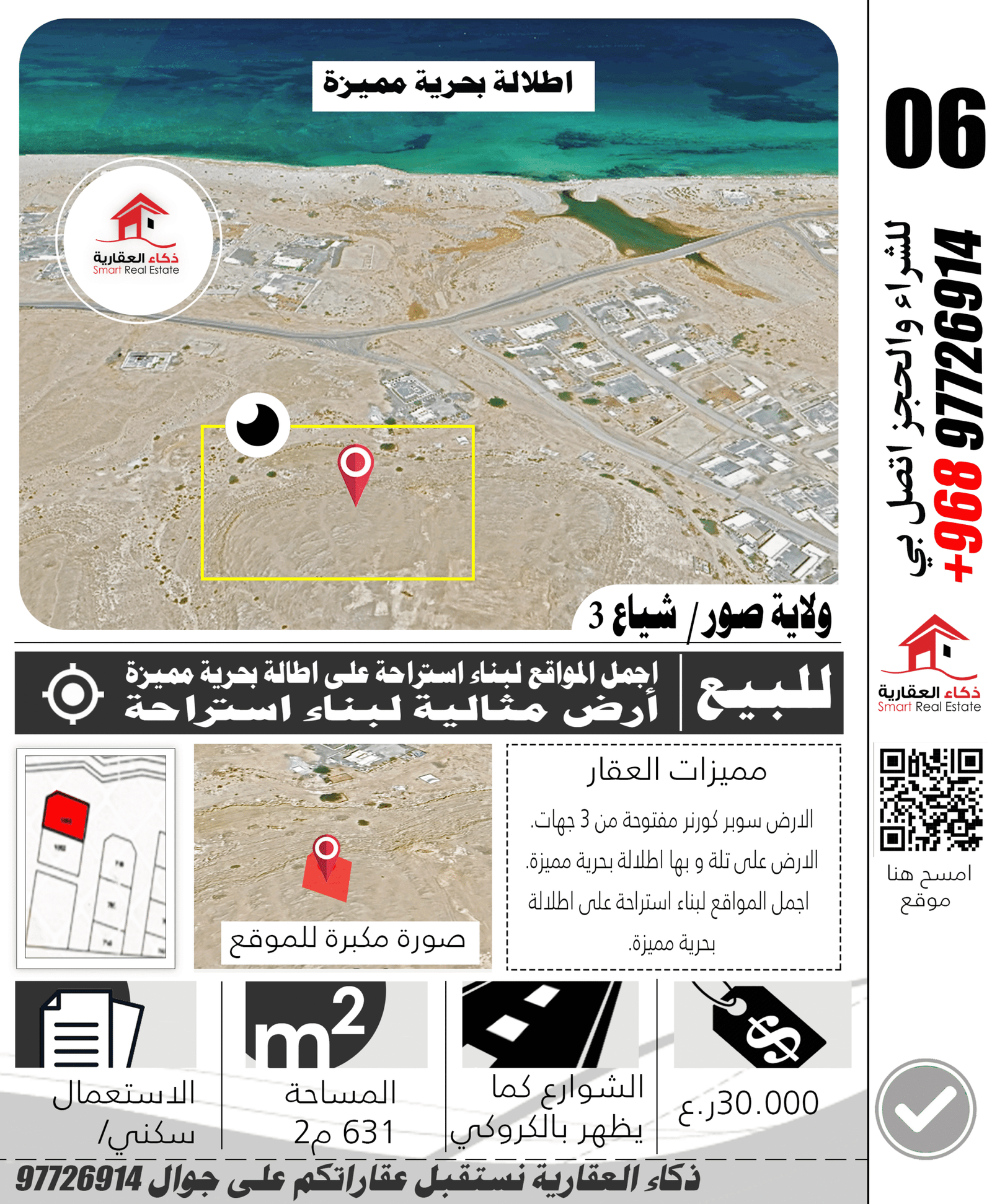 – الارض على تلة و بها اطلالة بحرية مميزة.